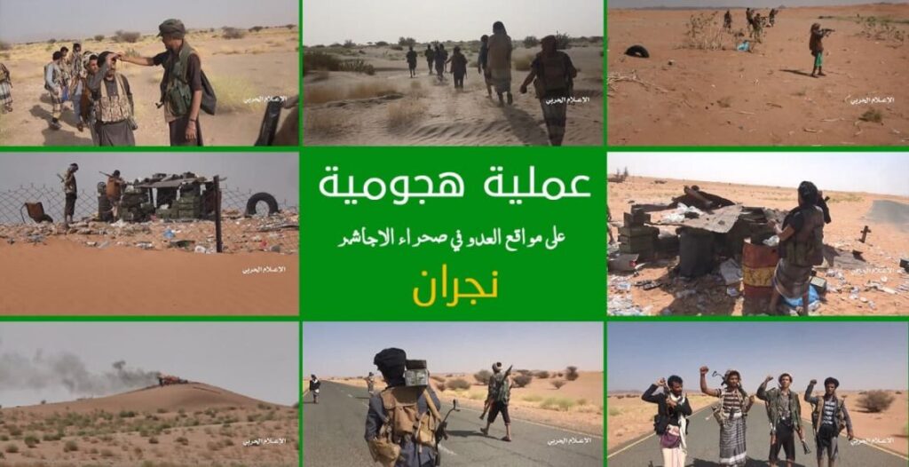 نفذ مجاهدو الجيش واللجان الشعبية عملية هجومية على مواقع وتجمعات مرتزقة الجيش السعودي في صحراء الأجاشر قبالة نجران.