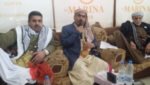 مشددا على أهمية استلهام العبر والدروس من ذكرى استشهاد الإمام علي عليه السلام بالمزيد من العمل والإصرار على مقارعة الباطل ورفض الخضوع لقوى الاستكبار مؤكدا ان أبناء شبوة ورجالها الشرفاء ومشائخها وقبائلها الحرة اتخذت موقف مشرف مع الوطن منذ بداية العدوان وفي مختلف مراحل النضال الوطني ضد المستعمر البريطاني ووقفوا بصدق وإخلاص مع كل أبناء الشعب اليمني مع ثورة ال21 من سبتمبر لانها ثورة وطنية تحمل مشروع وطني كبير يرتكز على تحرير الوطن من التبعية وإنهاء الوصاية على اليمن الى الابد قائلا إن اليمنيون التفوا حول مشروع السيد القائد عبدالملك بدر الدين الحوثي لأنهم آمنوا بمشروع السيد القائد لأنه مشروع يسعى لبناء اليمن وتخليصه من الارتهان للخارج كما تطرق اللواء الركن عوض العولقي محافظ المحافظة خلال كلمتة في الأمسية إلى تاريخ الأطماع والعداء السعودي على اليمن مؤكدا بأن الحرب السعودية لم تبداء على اليمن منذ تاريخ العدوان وإنما بدأت منذ أكثر من مائة عام ابتداء بمجزرة تنومة ضد الحجاج اليمنيين العزل مرورا بحرب 34 ميلادية واحتلال الأراضي اليمنية نجران وعسير وجيزان وهي حرب مستمرة الى اليوم وسببها مطامع السعودية في موقع وثروات اليمن بالرغم ان اليمن لم يكن لها اي عداء مع السعودية أو الإمارات أو غيرهن من العدول العربية على مر التاريخ وجاءت الفرصة لظهور اطماعهم في اليمن في العام 2004 م عند الحرب الأولى ضد أنصار الله واليمن عموما مشيرا الى ان العدوان يحاول تسويق مصطلحات ومبررات كاذبة لهذه الحرب ومنها ادعائهم بأن السيد القائد يهدف لتبني الإمامة والولاية قائلا اتباع شخص من ال البيت وبهذه الصفات العظيمة يعتبر شيء يشرفنا جميعا وان تحكم ثلاثة ضباط في شبوة وتحكمهم بمصيرها أمر مخزي لن يقبلة أي شخص من أبناء شبوة ورجالها المخلصين الذين اختاروا التحيز الى وحدة وطنهم بعيدا عن مشاريع التقسيم والشرذمة التي يتبناها الإحتلال وينفذها مرتزقتهم في شبوة والمحافظات المحتلة وما يطلقون عليها مناطق محررة وهي جاثمة تحت عبودية الإحتلال قائلا ان اي تحالف مع أي قوى تخدم العدوان أمر مرفوض ولن يكتب له النجاح وان التحالف لن يكون إلا مع القوى الوطنية المناهضة للعدوان والتي تؤمن بوحدة اليمن وسيادته على كل شبر من أرضية