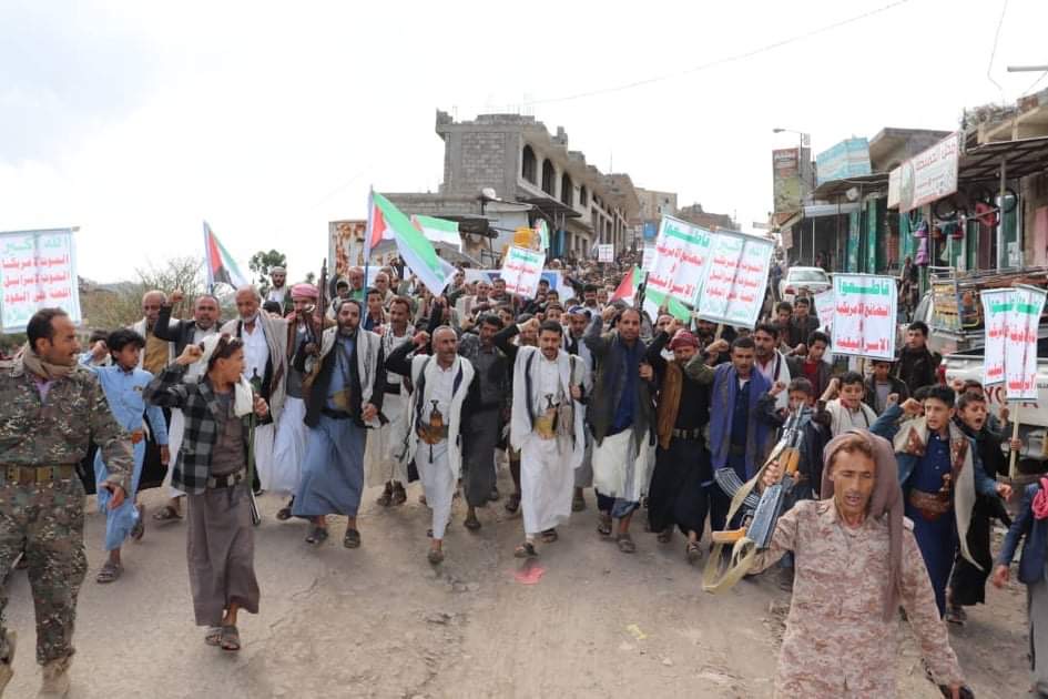 واكد المشاركون في المسيرة إن ابناء الشعب اليمني يقف إلى جانب الشعب الفلسطيني ومستعد للتضحية في سبيل القدس الشريف والمقدسات الإسلامية وسيضل واقفٱ إلى جانب الشعب الفلسطيني وقضيته العادلة