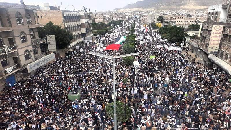 كذلك، وشهدت العاصمة اليمنية صنعاء اليوم مسيرةً حاشدةً نصرة للأقصى الشريف وفلسطين المحتلة، وضدَّ العدوان الصهيوني على الشعب الفلسطيني.
