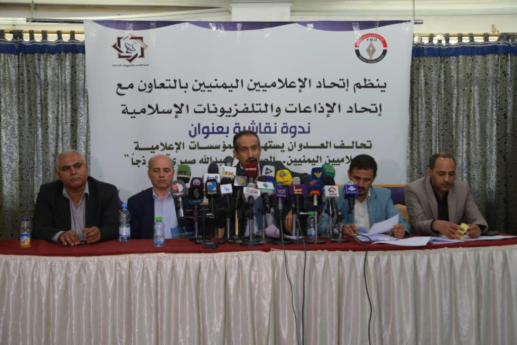 ♦️ نظم اتحاد الإعلاميين اليمنيين واتحاد الإذاعات والتلفزيونات الإسلامية اليوم ندوة نقاشية حول “استهداف تحالف العدوان للمؤسسات الاعلامية والإعلاميين اليمنيين.. الصحافي عبدالله صبري أنموذجاً”.