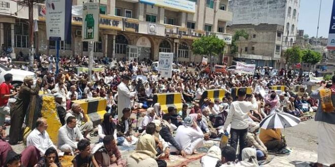 وقالت مصادر محلية بتعز إن حشودا غفيرة من المواطنين أدوا صلاة الجمعة في ساحة الحرية بالمدينة شاركوا في المظاهرة الشعبية مطالبين بإنهاء الفساد الذي تغرق فيه المؤسسات الحكومية في المحافظة.