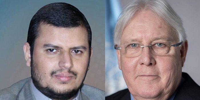 التقى قائد الثورة السيد / عبد الملك بدر الدين الحوثي ، اليوم الأحد، بالمبعوث الاممي إلى اليمن مارتن غريفيث .
