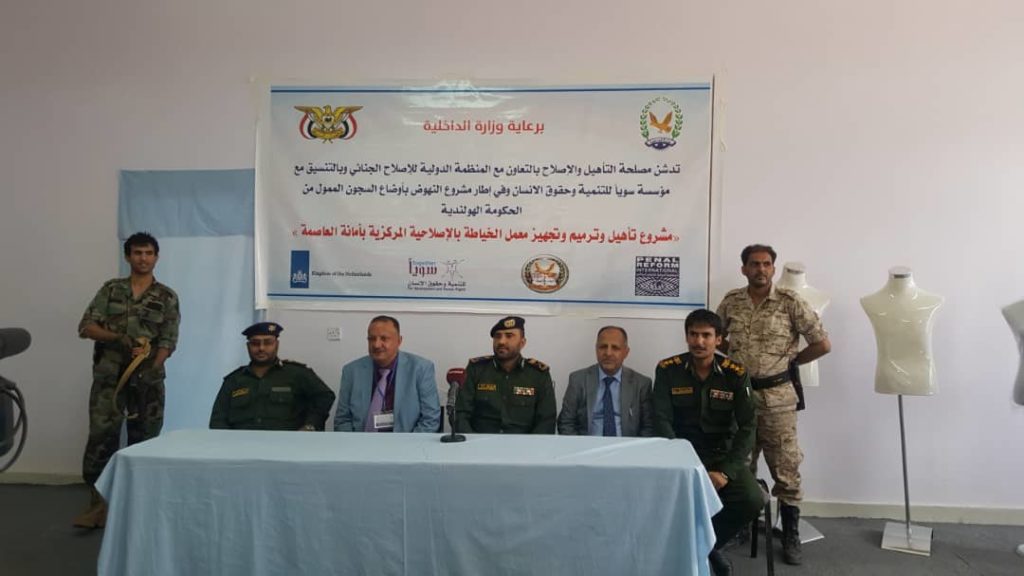 وفي افتتاح المشروع الذي يأتي في إطار مشروع النهوض بأوضاع السجون الممول من الحكومة الهولندية وبرعاية وزارة الداخلية أشاد رئيس مصلحة التأهيل والإصلاح بوزارة الداخلية اللواء عبدالله الهادي بدور المنظمة الدولية للإصلاح الجنائي ومؤسسة سويا في دعم هذا المشروع وغيره من المشاريع التي تنفذها المنظمة والذي سيعود بالفائدة على السجناء في تأهيلهم وإعادة تشغيل مكائن الخياطة.