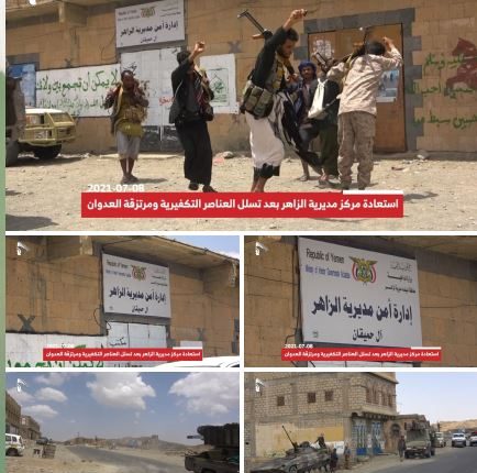 تمكن أبطال الجيش واللجان الشعبية، اليوم الخميس، من استعادة مركز مديرية الزاهر بمحافظة البيضاء.