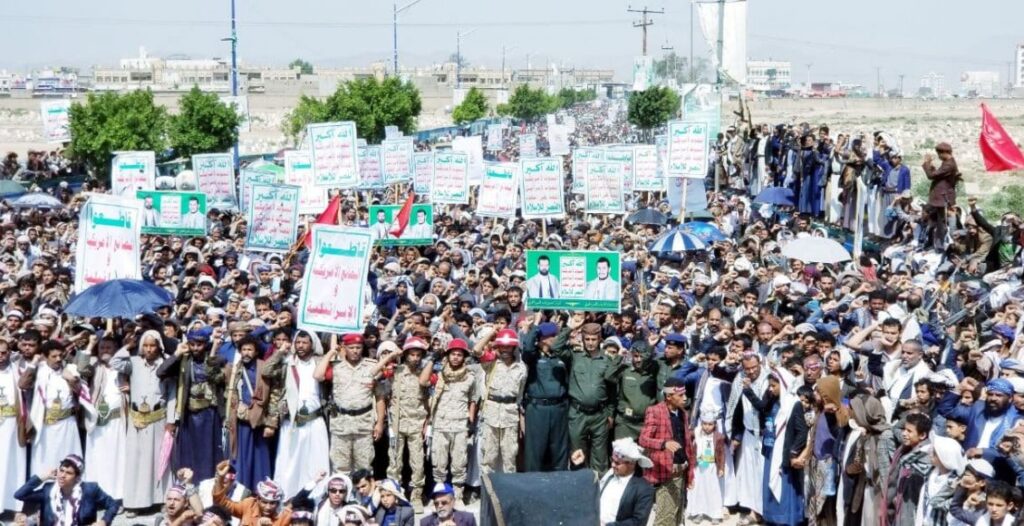 ورفع المشاركون في المسيرة شعارات الحرية المناهضة لقوى الاستكبار وفي مقدمتها أمريكا، واللافتات المعبرة عن أهمية إحياء هذه المناسبة والمنددة باستمرار العدوان والحصار على الشعب اليمني.