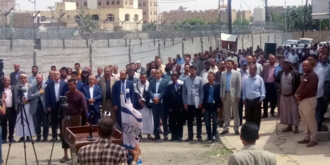 وجدد موظفو شركة النفط اليمنية في وقفة احتجاجية لهم اليوم امام مكتب الأمم المتحدة بصنعاء مطالبتهم للمجتمع الدولي القيام بمسؤلياتهم والعمل على ايقاف القرصنة البحرية ومنع احتجاز سفن المشتقات النفطية من قبل تحالف العدوان الأمريكي السعودي.
