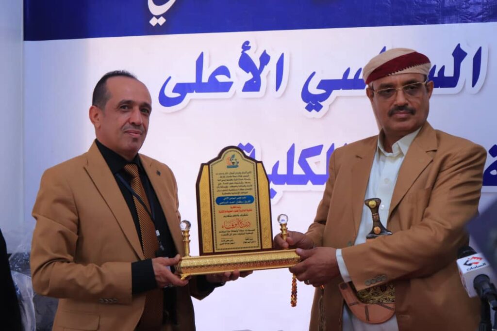 كما قامت إدارة الكلية ممثلة ب أ/عيبان عبدالله الجبري و د/ضحى احمد الجلال عميدة الكلية بتكريم رئيس الكلية الفخري بدرع الوفاء عرفان وتقدير لسهاماته وتفاعله وتشجيعه للجامعات الأهلية للمساهمة في خلق جيل متسلح بالعلم والمعرفة.