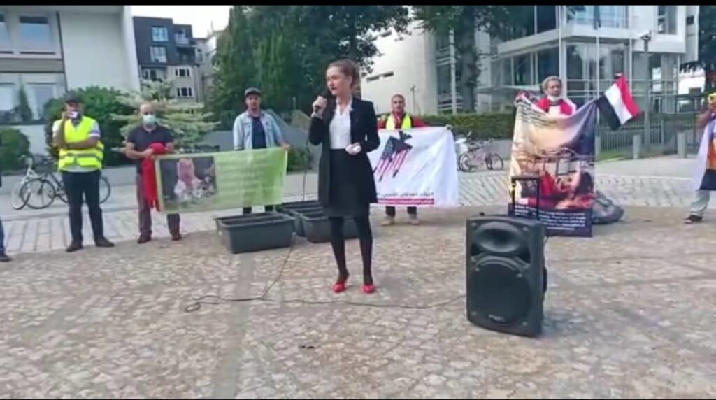كما ألقيت كلمة باللغة الألمانية، أوضحت جرائم العدوان الأمريكي السعودي على اليمن وأثر الحصار وتداعياته على الشعب اليمني.