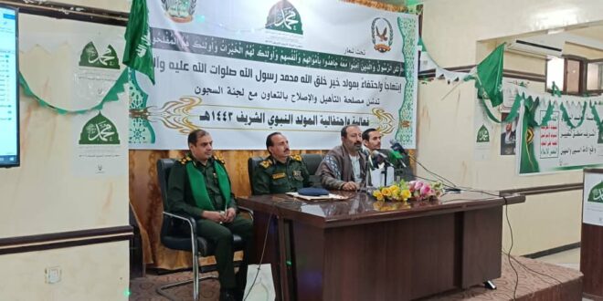 وفي الحفل أكد وكيل مصلحة التأهيل والإصلاح بالداخلية العميد محمد حسين العبالي أهمية الاحتفال بمولد خير البرية محمد صلى الله عليه وسلم التي تعد من أعظم المناسبات الإسلامية.