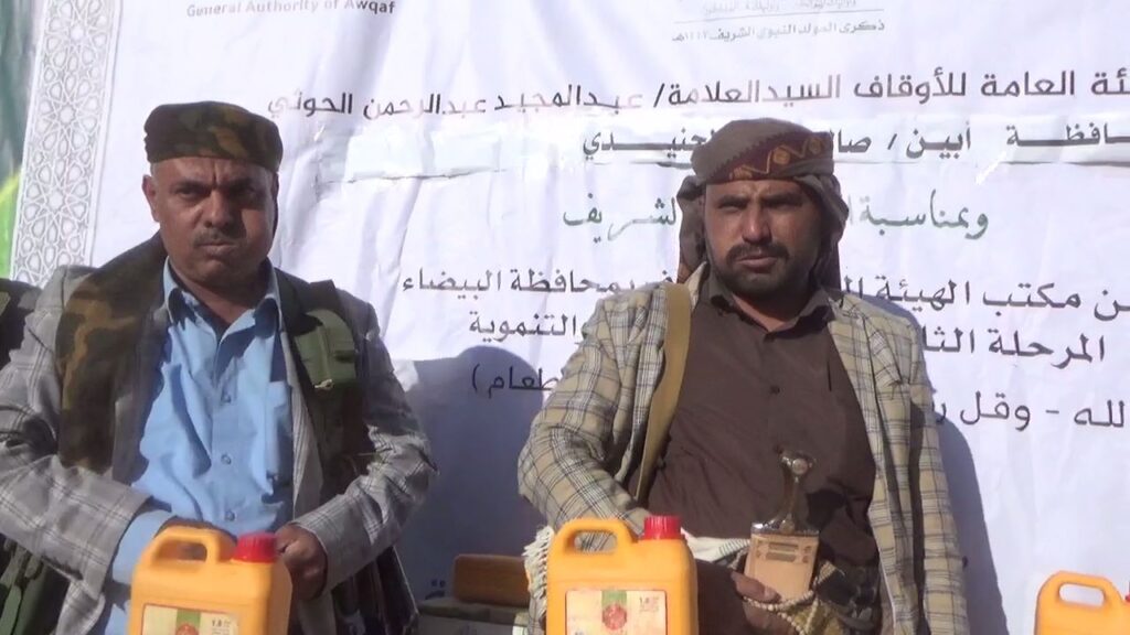 إلى ذلك، دشّن محافظ أبين صالح الجنيدي، ورئيس هيئة الأوقاف في محافظة البيضاء عبدالرحمن الديلمي، في مدرسة المخزجة، توزيع 300 سلة غذائية كمرحلة أولى لأبناء مديرية لودر.
