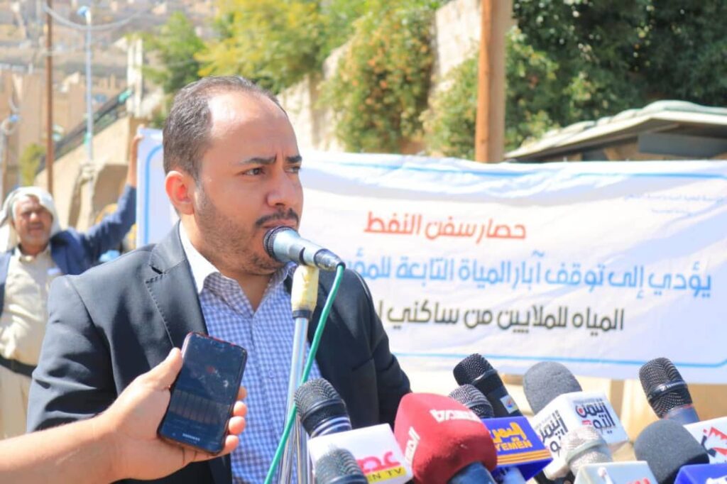 وأضافت المؤسسة في بيانها بأن انعدام الوقود سيؤدي الى توقف تام لمولدات الآبار العاملة والبالغة 70 بئرا لاستخراج ما يقارب (ل 1.150.000) لترا مكعب وكذلك توقف محطة معالجة الصرف الصحي وآليات ومعدات الصيانة نتيجة احتجاز وحصار سفن المشتقات النفطية وحرمان قرابة الخمسة الملايين نسمة في العاصمة والنازحين إليها من مياه الشرب النظيفة.