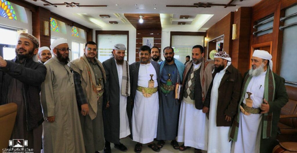 التقى عضو المجلس السياسي الأعلى محمد علي الحوثي اليوم الاثنين بصنعاء، مشائخ السلفيين من محافظتي إب وتعز.