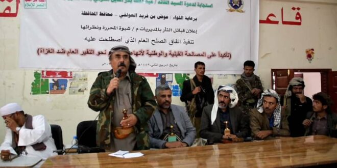 تنفيذ إتفاق الصلح العام لمدة عامين تأكيدا على المصالحة القبلية والوطنية لإنهاء الإنقسام و نحو النفير العام ضد الغزاة