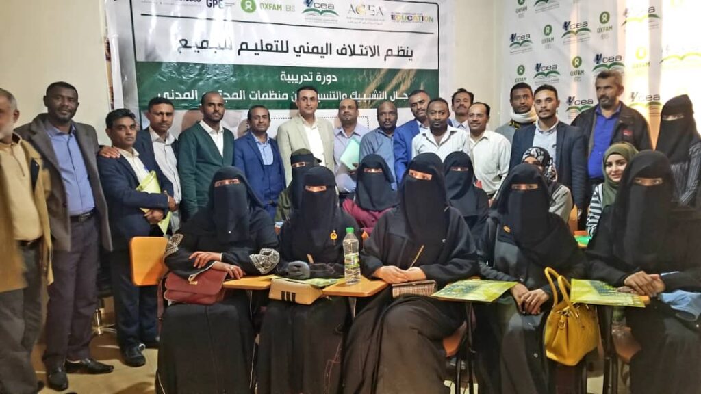 نفذ الائتلاف اليمني للتعليم للجميع في الفتره من 23-24-نوفمبر / 2021 دورة تدريبية لمنظمات المجتمع المدني في مجال التشبيك والتنسيق مع منظمات المجتمع المدني في مدينتي صنعاء وعدن ،وذلك من اجل دعم ومناصره التعليم وحث المجتمع على المشاركة المجتمعيه كون التعليم مطلب مجتمعي
