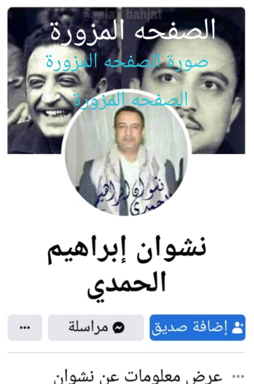 و دعى نشوان الحمدي أصدقائه وكافة محبي أسرة الشهيد ابراهيم الحمدي بعدم التعاطي مع ما ينشر في صفحة الفيس بوك ،، وعمل بلاغات بتلك الصفحة المزورة ،، ليتم اغلاقها عبر إدارة الفيس بوك