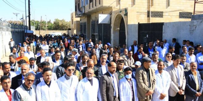 جاء ذلك خلال الوقفة الاحتجاجية للقطاع الصحي الحكومي والخاص بأمانة العاصمة وتحذيره من توقف الخدمات الصحية بشكل نهائي أمام المرضى وتوقف المنشآت الصحية وما يترتب على ذلك من كارثة صحية وشيكة قلصت من ساعات عملها نتيجة استمرار تحالف العدوان الأمريكي السعودي في احتجاز سفن النفطية.