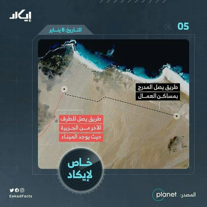 وحسب “إيكاد”، فقد أظهرت ظهور طريق ترابي معبّد، الذي تبين لاحقاً أنه مدرج طائرات، يظهر أنه سيتم الشروع في تعبيده بالإسفلت والخرسانة قريباً.