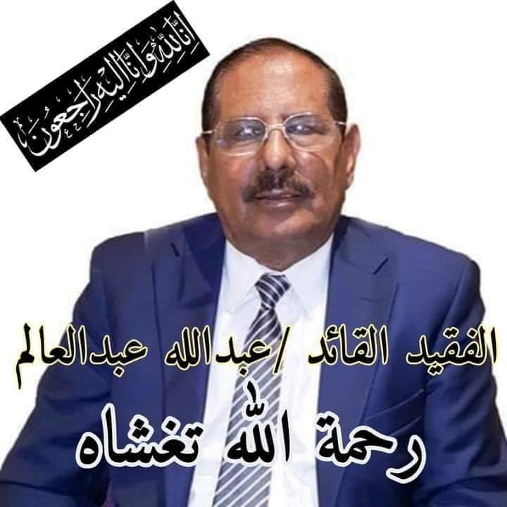 ببالغ الحزن والأسى تلقينا نبأ وفاة المغفور له بإذن الله تعالى فقيد الوطن المناضل/ عبدالله عبدالعالم