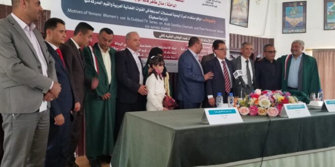 ناقشت الباحثه منال طاهر الوليد المعيده بكلية الاعلام جامعة صنعاء اليوم رسالتها لنيل درجة الماجستير الموسومه بدوافع استخدام المرأة اليمنية للمسلسلات المدبلجة في القنوات الفضائية العربية والقيم المدركة منها كدراسة مسحية ، الرساله التي كانت باشراف من رئيس قسم الاذاعة والتلفزيون في كلية البروفيسور محمد الفقيه وعضويته في المناقشه وعضوية كلا من الاستاذ الدكتور احمد العجل ممتحن داخلي من ذات الكلية والاستاذ الدكتور حسن دجرة من جامعة الحديدة ممتحنا خارجي ، هذا وقد استعرضت الباحثة امام لجنة الحكم والحضور الرساله وابعادها وتأثيراتها على المرأه اليمينة والسعي الى طمس الهوية الإسلامية اليمينة بالمسلسلات المدبلجة التي غزت الشاشات الصغيرة في كل منزل ، من جانبهم ناقش الباحثه لجنة الحكم في تفاصيل الرساله وخاضوا معها بالاستفسارات والأسئلة التي صبت مجملها في نجاح الرساله بدأ من اختيار الموضوع واهميته والتفاصيل الكثيرة والمدلولات لاهمية الرساله والتي ابانت مدى تأثر المرأه بتلك المسلسلات مما سبب تصحر عاطفي في كيان الاسره اليمينة ، لافتين في طرحهم الى ان الرساله كانت دقيقه جدا وحساسه وفي وقتها الامر الذي جعل اللجنه تقارن الرساله بباقي الرسائل العلمية التي تناقش لنيل درجة الماجستير وتغليب هذه الرساله على سابقاتها من الرسائل مما يجعلها في منزله رساله دكتوراه من حيث الاحكام والأهمية الا انها استحقت بها الباحثة درجة الماجستير بتقدير ممتاز وبدرجة 95% ، هذا وقد اوصت لجنة الحكم والمناقشين الباحثة وكلية الاعلام صنعاء والكليات الإعلامية الوطنية والعربية والدولية باعتبار الرساله مرجع علمي للرسائل القادمه والاستفاده من توصياتها وطباعتها على نفقة جامعة صنعاء
