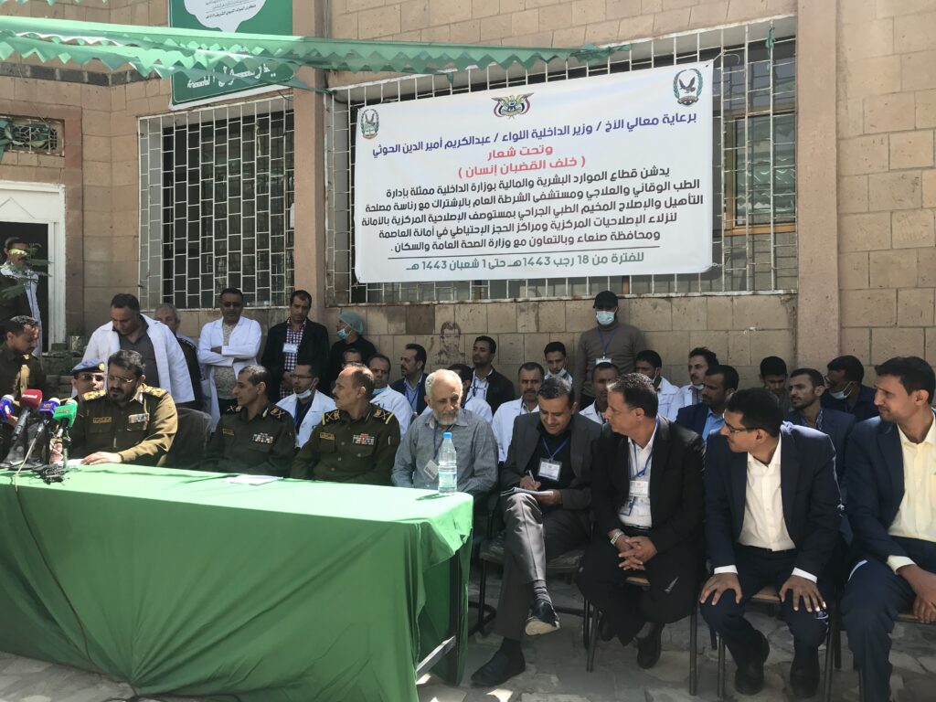 من جانبه أشار الوكيل المساعد لقطاع الموارد البشرية بوزارة الداخلية اللواء محمد مارش إلى أن المخيم الذي يتم تنفيذه بالتنسيق مع وزارةالصحة سيقدم خدمات طبية جراحية نوعية لنزلاء الاصلاحيات .. مشيدا بدعم مسؤولي وزارة الصحة ورفد مستوصف المصلحة المركزيبالكوادر الطبية التي تقوم بإجراء العمليات والمعاينة للمرضى.. مؤكدا الحرص على تعزيز الشراكة والتعاون وتقديم كافة التسهيلات لتنفيذمثل هذه المخيمات الإنسانية في المجال الطبي والصحي.