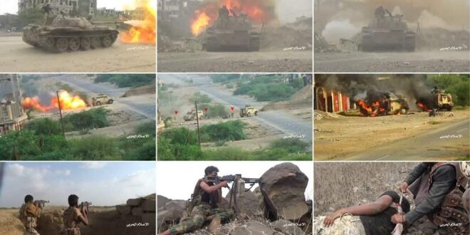 وبينت مشاهد الإعلام الحربي تمكن أبطال الجيش واللجان الشعبية -بفضل الله- من التصدي لقوات العدو وإلحاقه خسائر فادحة في الأرواح والعتاد.