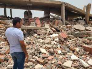 ويضيف قائلاً، وهو ينظر إلى حقل مغطى بركام من الطوب والحجر: “كانت أحلامي هنا في هذا المكان بالذات”. ويمضي متحدثاً فيقول:”هنا، اعتدنا أن نرسم البسمة على وجوه الناس… قبل أن تندلع الحرب”.