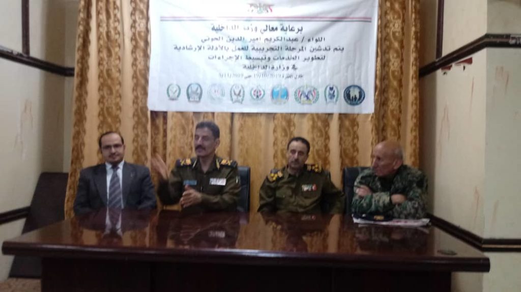 وفي حفل التدشين أكد رئيس أكاديمية الشرطة _رئيس لجنة تطوير الخدمات اللواء مسعد الطاهري على ضرورة تطبيق هذه الأدلة الأرشادية وذلك للأرتقاء وتطوير الخدمات وتبسيطها في وزارة الداخلية والمصالح والفروع التابعة لها.