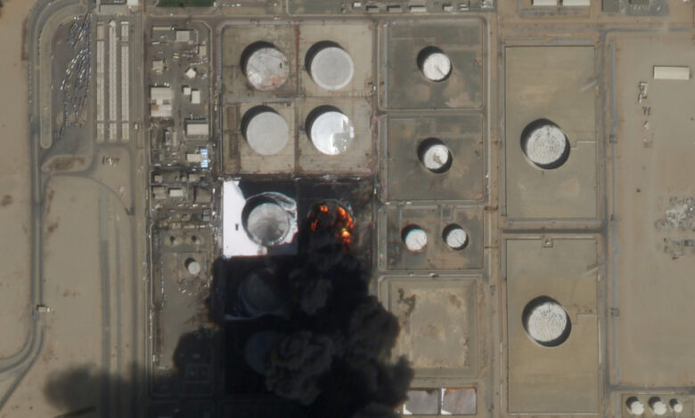 وقالت “أسوشيتد برس” في تعليقها على صورتين، نشرتهما يوم السبت: تظهر صورة الأقمار الصناعية هذه من “Planet Labs PBC” حريقا لا يزال مشتعلا في منشأة “أرامكو” السعودية النفطية بشمال جدة .