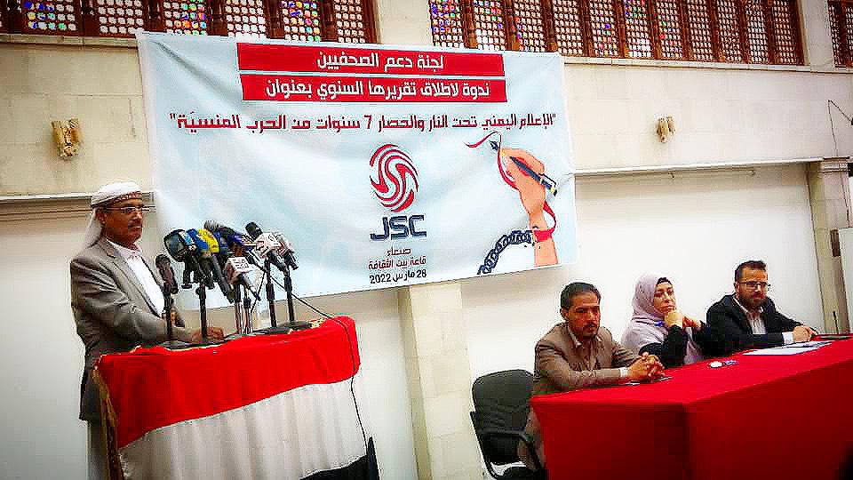 عقدت لجنة دعم الصحفيين اليمنيين اليوم ،بصنعاء، مؤتمرها السنوي تحت شعار الإعلام اليمني تحت النار والحصار 7سبع سنوات من الحرب المنسية ،