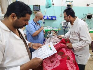 خارج قاعة الطوارئ، يجيب الدكتور عبد العزيز على الأسئلة ويستمع إلى شواغل المرضى الذين قدموا إلى المستشفى التماساً للرعاية العاجلة.