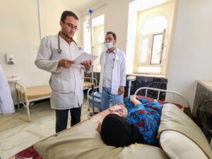 وفي حين يعاني بعض المرضى من إصابات ترتبط ارتباطاً مباشراً بالنزاع، فإن العديد منهم يفدون إلى المستشفى بسبب الآثار الصحية غير المباشرة مثل سوء التغذية والأمراض الناجمة عن تعطل شبكات المياه والصرف الصحي. ويوضح الدكتور عبد العزيز ذلك فيقول: ” أكثر شيء يرضيني هو حينما نتمكن من إنقاذ حياة مريض كان على وشك الموت وحينما نقدم الخدمات التي تخفف ألم أحد الأشخاص وتشفيه من مرضه. وهذه هي الأمور التي تجعلنا نشعر بالرضا عن عملنا”.