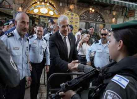 ومساء الأحد، أجرى لابيد، رفقة مسؤولين إسرائيليين بينهم وزير الأمن الداخلي عومر بارليف، جولة في منطقة باب العامود.