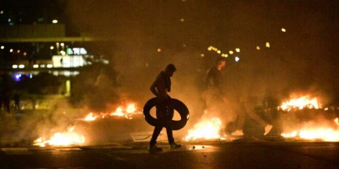 ووصفت الشرطة المحلية الأحداث في بيان، بأنها “أعمال شغب عنيفة”، معلنة إصابة 3 من عناصرها بجروح واعتقال اثنين من المحتجبن.