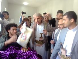كما قام وكيل هيئة الزكاة، علي السقاف، ووكيل قطاع الموارد، الدكتور علي الأهنومي، والمدير التنفيذي لمؤسسة الجرحى علي الضحياني، بزيارة الجرحى والمعاقين في عدد من مراكز الرعاية بأمانة العاصمة وتبادلوا معهم تهاني العيد وتوزيع الهدايا النقدية والعينية.