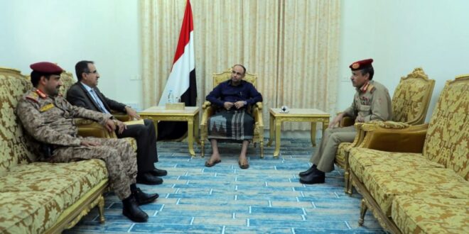 التقى فخامة المشير الركن مهدي المشاط رئيس المجلس السياسي الأعلى القائد الأعلى للقوات المسلحة اليوم السبت ، نائب رئيس الوزراء لشؤون الدفاع والأمن الفريق الركن جلال الرويشان ووزير الدفاع اللواء الركن محمد ناصر العاطفي، ورئيس هيئة الأركان العامة اللواء الركن محمد عبدالكريم الغماري.