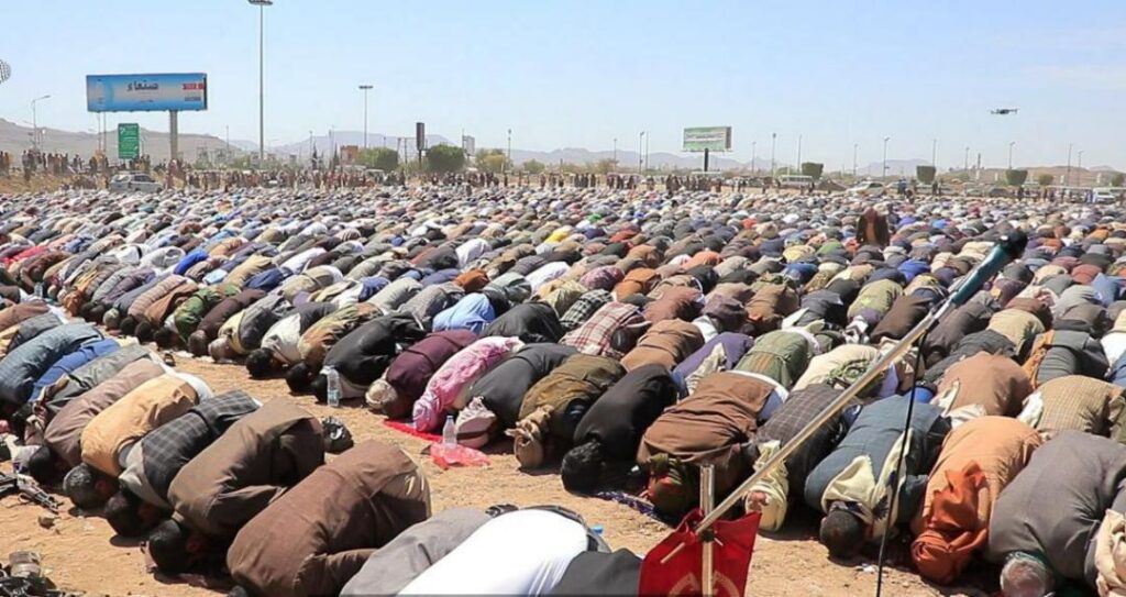 أدت جموع المصلين من مديريات امانه العاصمه صلاة الإستسقاء بعدد من الساحات امثال ملعب الظرافي بمديريه التحرير وميدان السبعين وحديقه الثورة بساحة ملعب الظرافي بحضور. رسمي وشعبي وجموع كبيرة