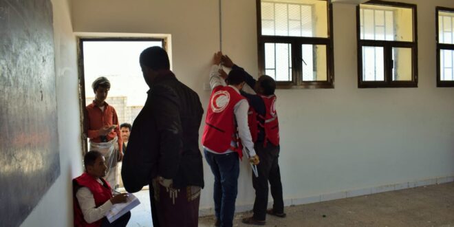 بدأت جمعية الهلال الأحمر اليمني فرع محافظة صنعاء وضمن أنشطة مشروع التقليل من المخاطر وإنقاذ التعليم “أعمال إعادة تأهيل وترميم عدد 7 مدارس في محافظة صنعاء” المستهدفة من المشروع من قبل المقاولين الذي تم اختيارهم بدعم وتمويل من الصليب الأحمر الألماني وبالتعاون والتنسيق مع مكتب التربية والتعليم بمحافظة صنعاء لتكون جاهزة مع بداية العام الدراسي الجديد لاستقبال أكثر من 10 آلاف طالب وطالبة.