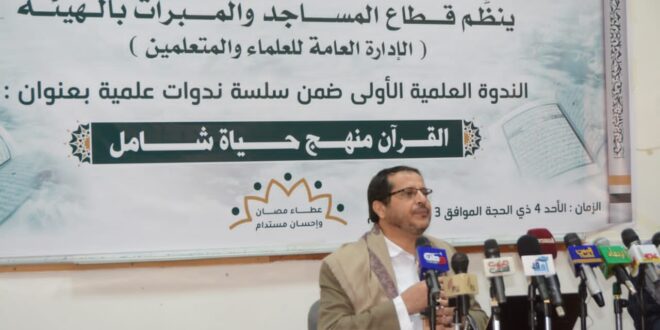في حين قدّم رئيس الهيئة العامة للأوقاف، العلامة عبدالمجيد الحوثي، المحور الثاني للندوة بعنوان “القرآن الكريم منهج حياة شامل” .. مبيناً أن الهدف من الندوة لفت الأنظار للعودة إلى كتاب الله ومعرفة قيمة وعظمة القرآن الكريم الذي هو منهج ودستور حياة للأمة.