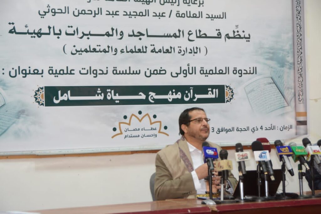 في حين قدّم رئيس الهيئة العامة للأوقاف، العلامة عبدالمجيد الحوثي، المحور الثاني للندوة بعنوان “القرآن الكريم منهج حياة شامل” .. مبيناً أن الهدف من الندوة لفت الأنظار للعودة إلى كتاب الله ومعرفة قيمة وعظمة القرآن الكريم الذي هو منهج ودستور حياة للأمة.