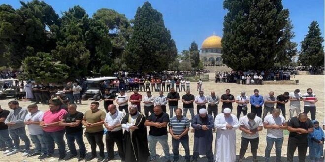 وذكرت مصادر محلية أن ساحات المسجد الأقصى شهدت توافد آلاف المصلين إليها منذ الصباح، وسط تواجد مكثّف لقوات العدو عند أبواب الأقصى وأبواب البلدة القديمة.