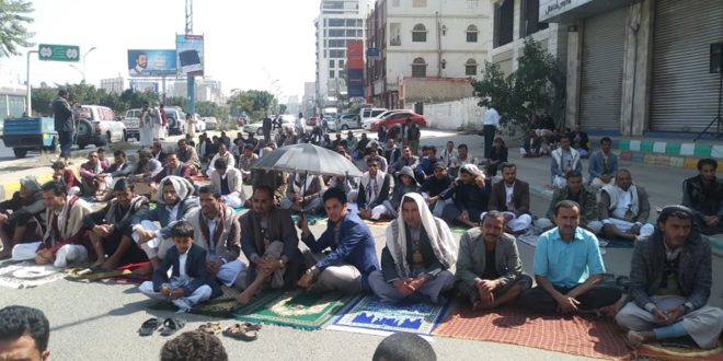 احتجاجية أمام مكتب الأمم المتحدة بصنعاء، عقب صلاة الجمعة الـ 37, والتي حملت عنوان ” الإعلان العالمي لحقوق الإنسان حبر على ورق ” وخلال الوقفة الاحتجاجية أكد الناطق الرسمي لشركة النفط أمين الشباطي أن تحالف العدوان ومرتزقته ما يزال يحتجز ثمان سفن نفطية ..