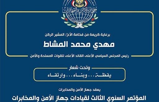 عقد جهاز الأمن والمخابرات مؤتمره السنوي الثالث لقيادات الجهاز للعام ١٤٤٤هـ – ٢٠٢٢م، تحت شعار “يقظة.. وبناء .. وارتقاء”.