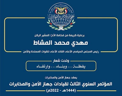 عقد جهاز الأمن والمخابرات مؤتمره السنوي الثالث لقيادات الجهاز للعام ١٤٤٤هـ – ٢٠٢٢م، تحت شعار “يقظة.. وبناء .. وارتقاء”.