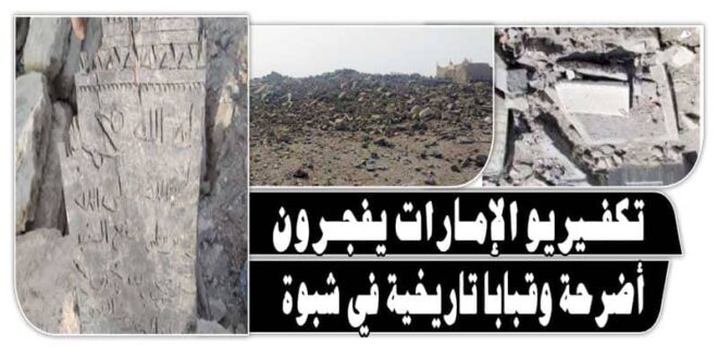 .وأكد مكتب الإرشاد في بيان صادر عنه اليوم وتلقى موقع “اليمن الحر الاخباري نسخة منه أن هدم الأضرحة والمعالم الإسلامية والتاريخية في محافظة شبوة والمحافظات الجنوبية المحتلة يدل على خبث المشروع والثقافة الباطله والفكر المنحرف الذي يحملة المرتزقة خدمة لأسرائيل عبر ادواتها من انظمة دول الخليج و المرتزقة الذين يمثلون ادوآت الادوآت بعدما سخرو انفسهم جنودا لمشروع الغزآة الجدد.