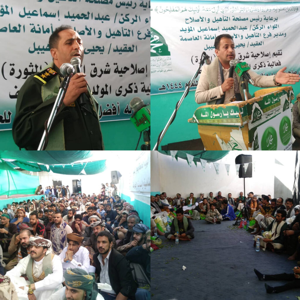 كما ألقيت العديد من الكلمات من نزلاء الإصلاحية أوضحت أن الاحتفاء بذكرى المولد النبوي يأتي من منطلق الحب والارتباط بالنبي الكريم والسير على نهجه في محاربة الظلم وتعزيز قيم العدل وتأصيل الهوية الإيمانية، خصوصاً في ظل العدوان والحصار.