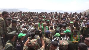 دشن نائب رئيس الوزراء الفريق الركن جلال الرويشان ووزير الداخلية اللواء عبدالكريم الحوثي اليوم بمديريتي الاشمور ومسور بمحافظة عمران فعاليات ذكرى المولد النبوي الشريف.
