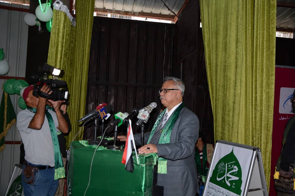 واختتم كلمته قائلاً” سنلتقي يوم السبت في الحفل الجماهيري الكبير الذي سيقام في العاصمة صنعاء، وكذا في ثمان عشرة ساحة في عموم المحافظات لنرسل إلى العالم رسالة مدوية عن إكبارنا واعتزازنا وحبنا لرسول الرحمة والهداية والمحبة صلى الله عليه وعلى آله وصحبه وسلم”.
