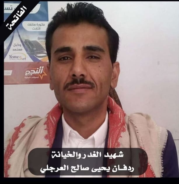 نعى حزب اليمن الحر وقبائل حاشد استشهاد الاخ/ ردفان بن يحيى صالح العرجلي الذي ارتقى إلى الرفيق الأعلى اليوم متأثرا باصابة بالغة تعرض لها في جريمة محاولة اغتيال شقيقه الدكتور/ناصر بن يحيى العرجلي في الـ22من سبتمبر الماضي بصنعاء على يد عصابة مسلحة بقيادة كل من المدعو/ محمد جحاف وكيل الهيئة العامة للأوقاف والمدعو/بندر العسل مدير فرع الهيئة بمحافظة إب