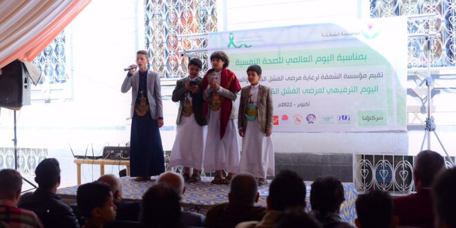 نظمت مؤسسة الشفقة لرعاية مرضى الفشل الكلوي والسرطان امس بصنعاء فعالية ترفيهية نفسية للمرضى الأطفال وذويهم المقيمين بدار المؤسسة بمناسبة اليوم العالمي للصحة النفسية.